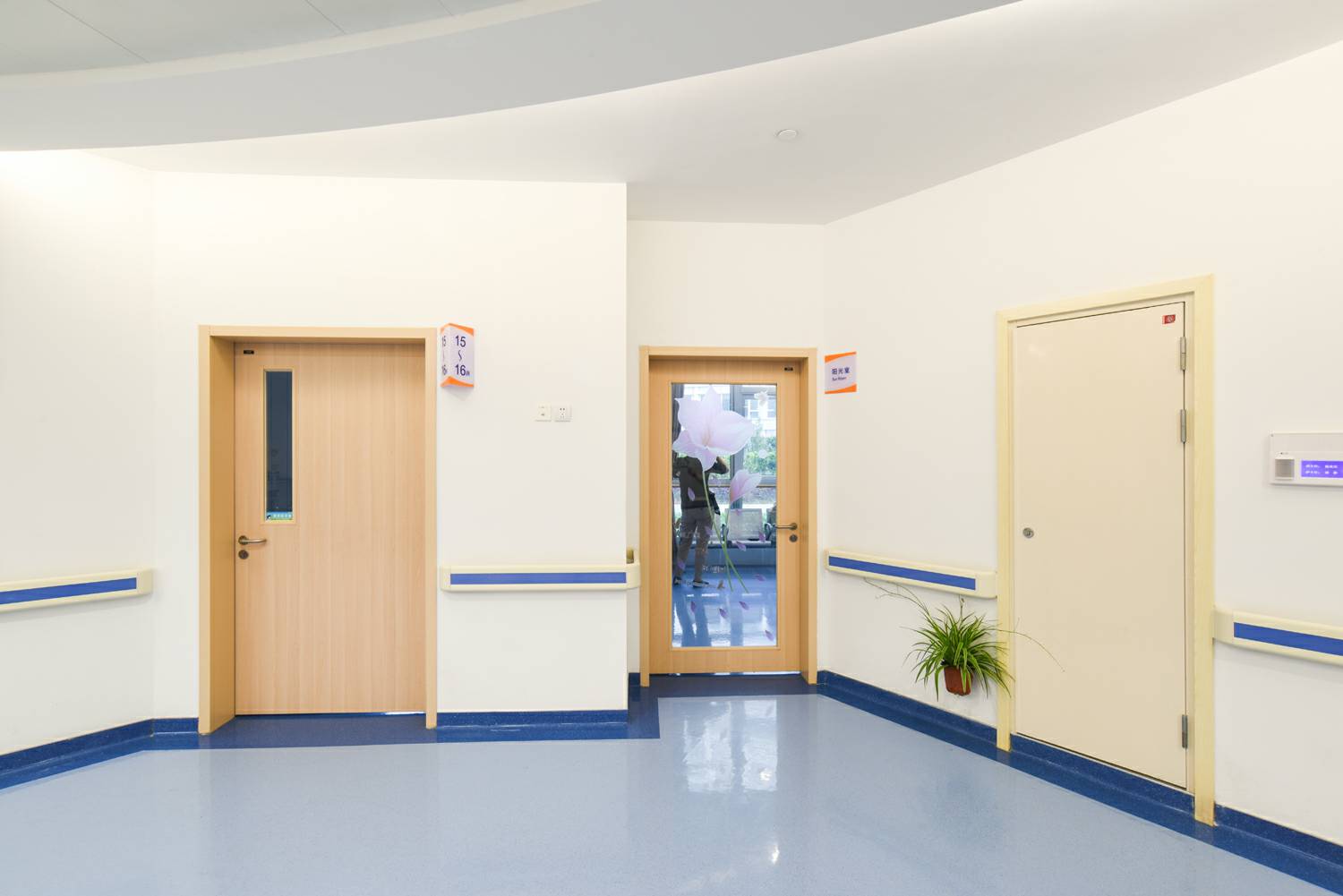 开云官方站入口-开云online(中国)室内门助力东方肝胆外科医院,进口免漆木纹饰面——“白山毛榉”饰面,具有极强的仿真效果,持久耐磨。榉木被广泛用于江南地区传统家具的制作,甚至有“无榉不成具”的说法。开云官方站入口-开云online(中国)此款饰面纹理清晰,木材质地感均匀,色调柔和,流畅,提升了医院整洁空间的人性温度,也给予使用人群贴近自然,放松心情的效果。根据适用功能的需求,开云官方站入口-开云online(中国)选配了方形的玻璃视窗。长方形、正方形的方正感,给予提升有序感。